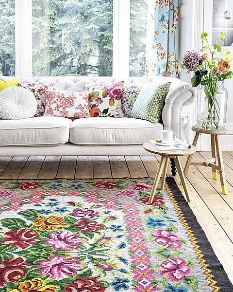 The rose kelims are old rugs woven in Moldova and the northern parts of Turkey. This type of carpet is characterized by colorful flowers set against an unusual background. Our vintage rugs fit very well with various interior styles, including country, minimalist, sleek, rugged, as well as more elegant or classic interiors.